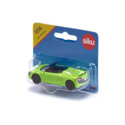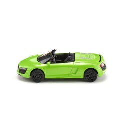 Petite miniature sous blister de la version cabriolet du super véhicule de sport Audi R8. Pneus extra larges sur jantes sport. Carrosserie en métal. Phares avant et arrière en plastique.