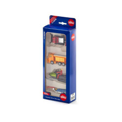 Coffret hiver de la marque Siku référence 6290. Le coffret comprend : une dameuse, un chasse-neige, une motoneige et une civière que vous pouvez accrocher à la motoneige.