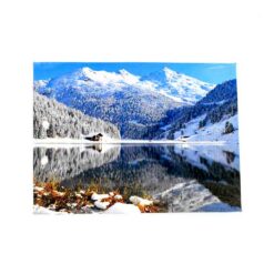Tableau représentant le Lac de Tueda en hiver situé dans la station de ski de Méribel (France, département de la Savoie), il s’agit d’une photo imprimée sur une toile et mise sur un cadre en bois à la façon d’une toile de peintre. Déjà monté, il ne vous restera plus qu’à l’accrocher au mur. Toile imprimée et montée en France.