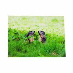 Tableau représentant deux marmottes se regardant en face à face depuis leur terrier (il n’y a aucun trucage dans l’image). Il s’agit d’une photo imprimée sur une toile et mise sur un cadre en bois à la façon d’une toile de peintre. Déjà monté, il ne vous restera plus qu’à l’accrocher au mur. Toile imprimée et montée en France.