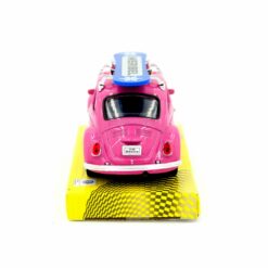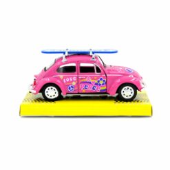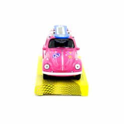 Véritable réplique de la Beetle avec une carrosserie rose en métal (les portes de la voiture s’ouvrent), contient des éléments plastiques (phares, jantes,…).