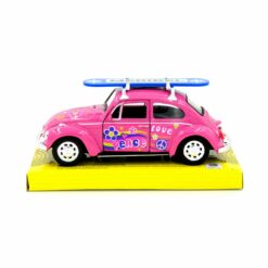 Véritable réplique de la Beetle avec une carrosserie rose en métal (les portes de la voiture s’ouvrent), contient des éléments plastiques (phares, jantes,…).